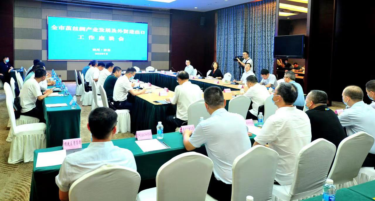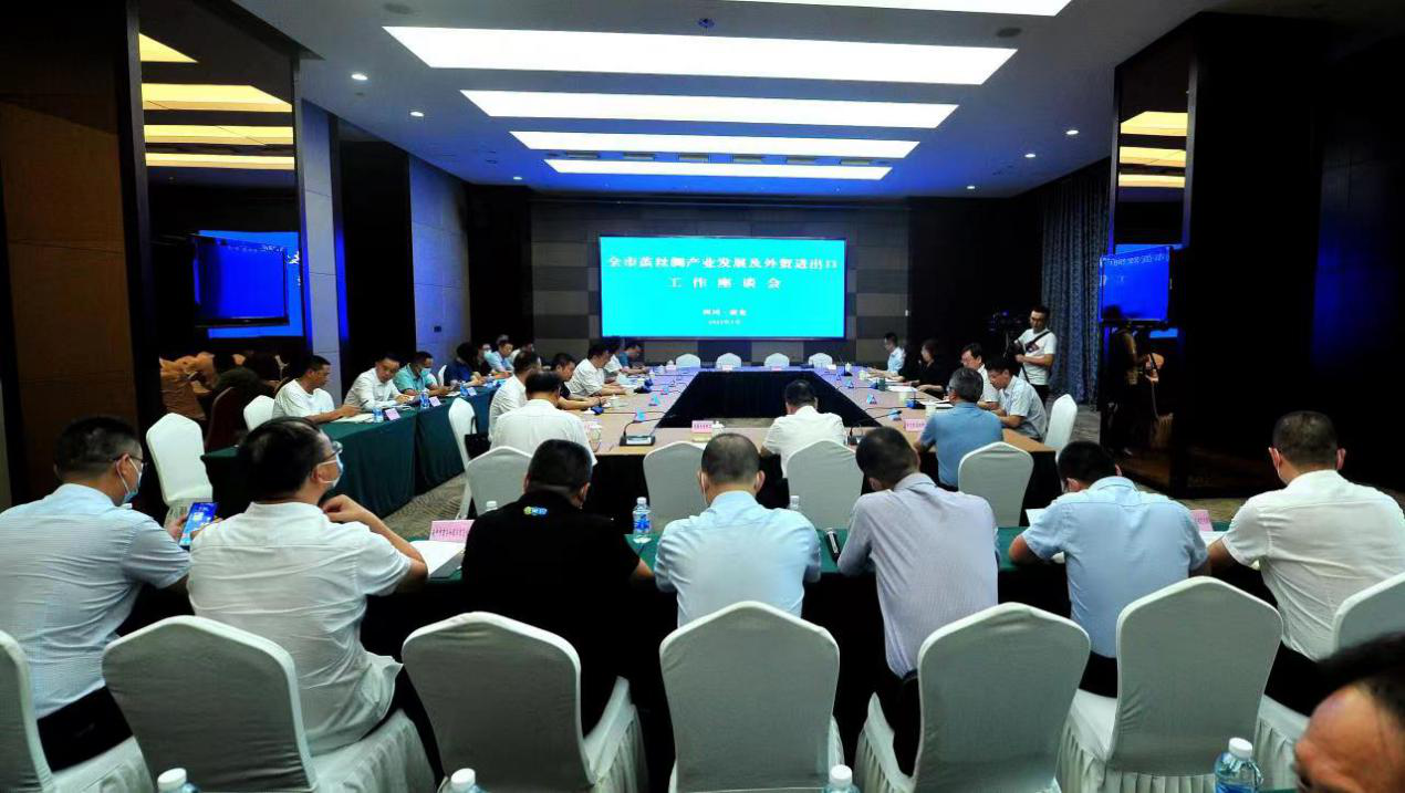 在随后召开的工作座谈会上,南充市商务局局长邱跃峰同志汇报了南充市茧丝绸产业发展及外贸进出口工作情况,南充市政府副市长张斌同志代表市人民政府表达了三层意思:一是衷心感谢商务部多年来对南充、对仪陇的大力关怀;二是抢抓机遇全力推进茧丝绸产业的发展壮大;三是恳请商务部和驻成都特派员办事处继续支持帮助南充。最后,付艳特派员对南充创建国家级经开区、综合保税区和推动传统茧丝绸产业转型升级、加快建设“两基地、一中心、一名城”(国家茧丝绸生产基地、丝绸产品出口基地,中西部茧丝绸集散交易中心,中国丝绸文化名城)、西部内陆开放高地以及筹备举办2022中国西部丝绸博览会等茧丝绸产业发展及外贸进出口工作给予了充分肯定和支持。