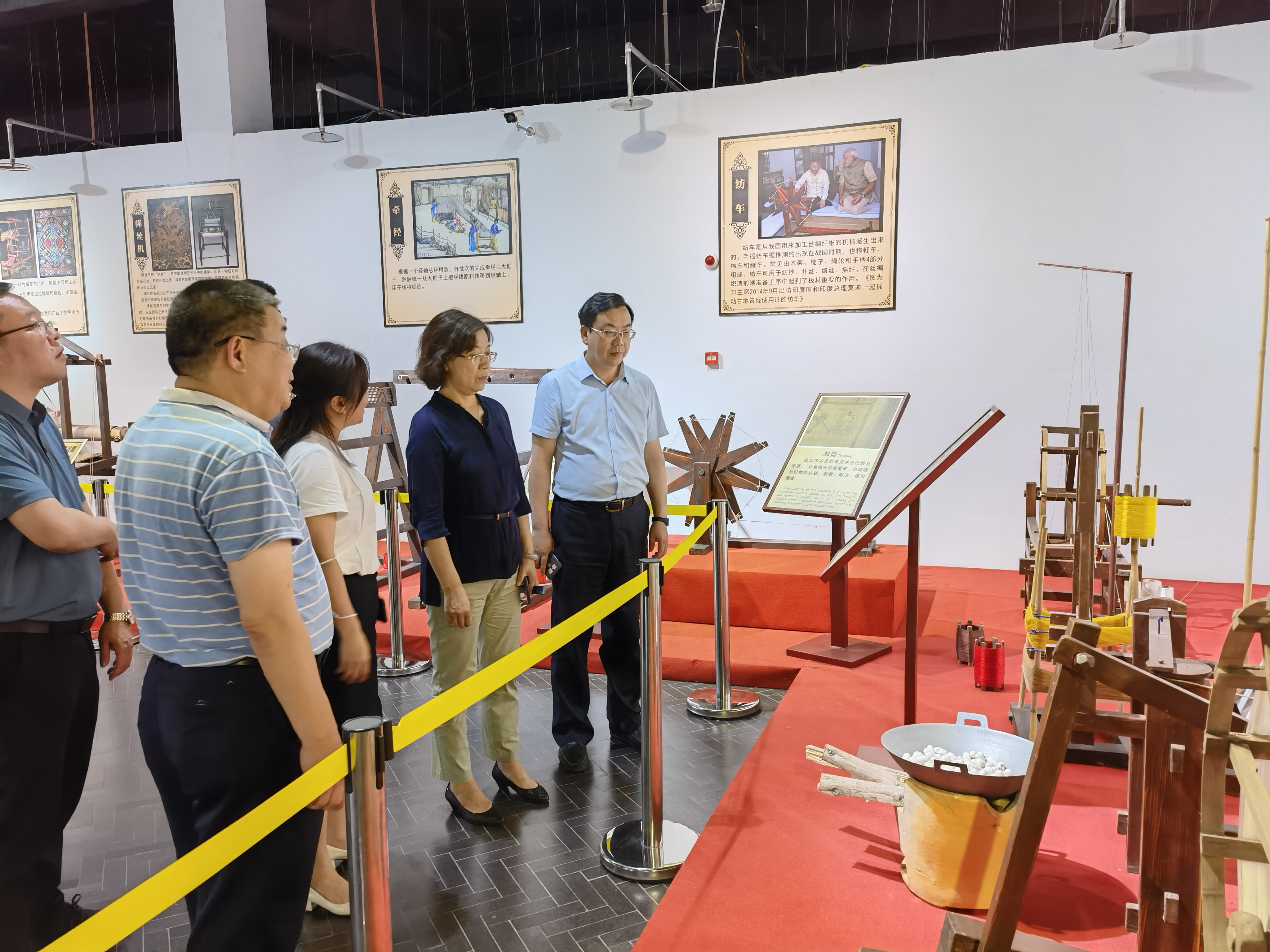 2022年7月4日至6日,商务部驻成都特派员付艳一行前来南充调研茧丝绸产业发展及外贸进出口情况。付艳一行不畏炎热先后前往仪陇县铜鼓乡九龙山村、土门镇华江村调研帮扶工作,并与商务部派驻村挂职干部谈心交流。其间,付艳一行前往朱德同志故居纪念馆与商务部派驻仪陇挂职、驻村干部联合开展了党日活动。分别在南充市委副书记、市长古正举,南充市委常委、市总工会主席方雷,南充市副市长张斌,南充市商务局等相关部门领导的陪同下,前往四川南充六合集团有限责任公司、南充依格尔有限责任公司、四川尚好桑业有限公司、四川顺成纺织品有限公司调研,实地了解南充丝绸企业生产和经营情况。