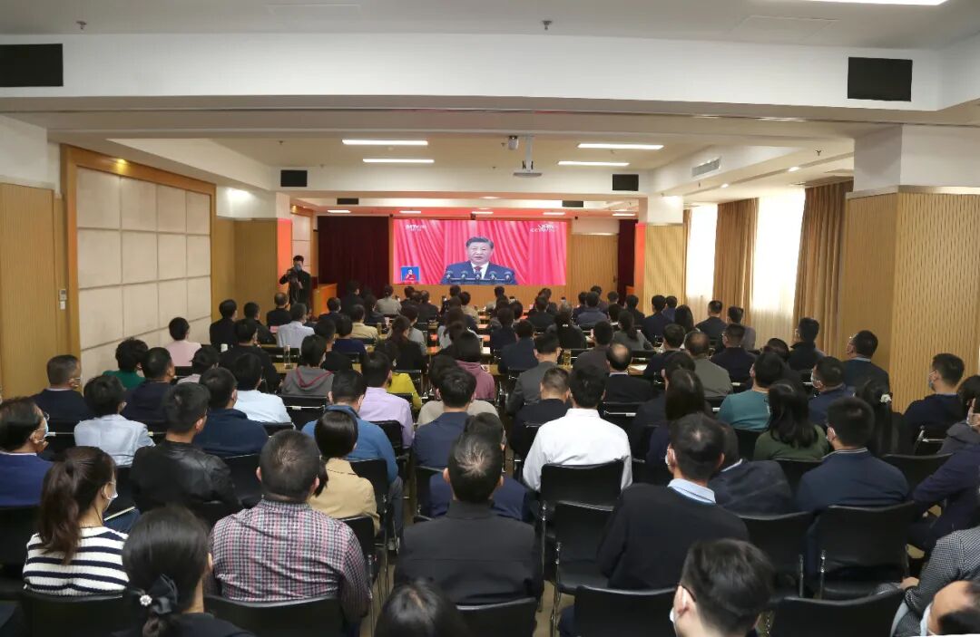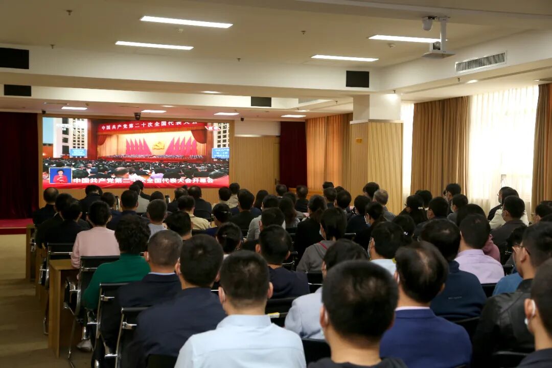 10月16日上午10时,中国共产党第二十次全国代表大会在北京人民大会堂隆重开幕,习近平总书记代表第十九届中央委员会向党的二十大作报告。山东省商务厅组织厅机关及直属单位党员干部集中收听收看大会盛况。