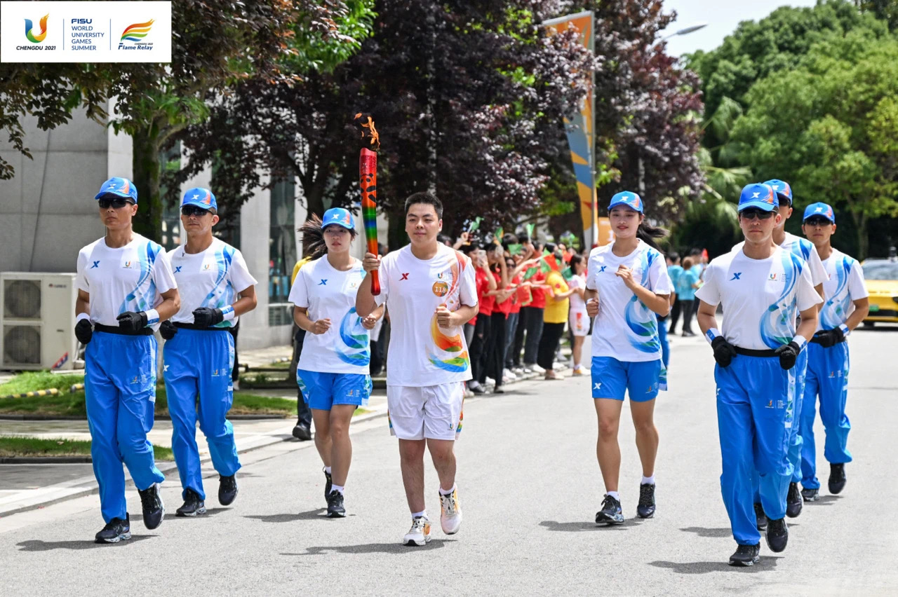 7月14日,成都第31届世界大学生夏季运动会火炬传递成都站第三传递日启动,火炬在西南财经大学、四川交通职业技术学院、成都中医药大学、四川农业大学和成都工业学院5所高校传递。四川商务职业学院朱海贝同学担任第118棒火炬手。