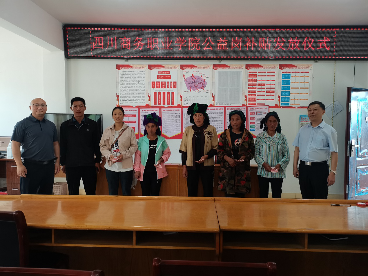在热柯觉中心村会议室,唐柯向学院在村设立的公益性岗位聘用人员发放了补贴,并出席了学院向村捐赠的微型消防站揭牌仪式。