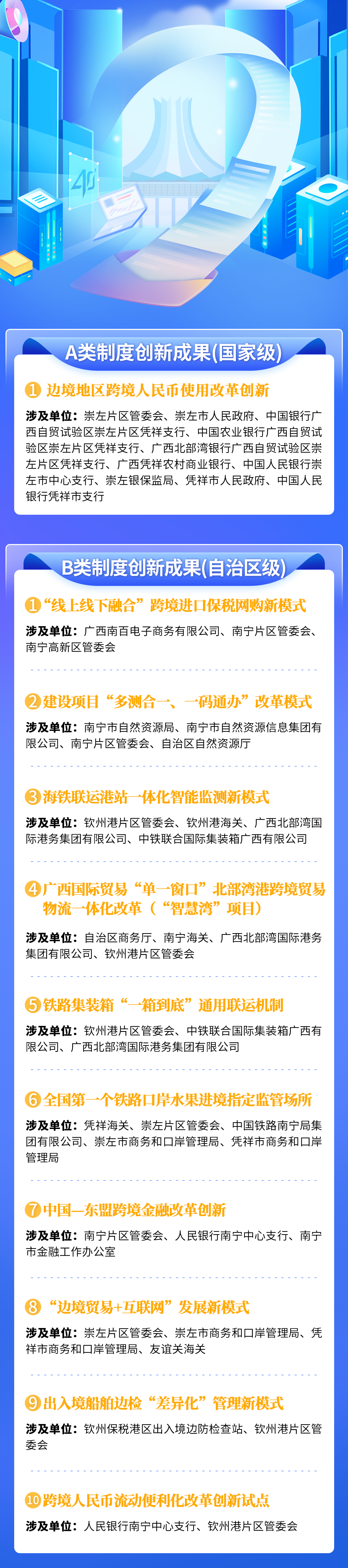 2.广西自贸试验区改革试点经验和最佳实践案例、经国家部委备案或认可的制度创新案例。