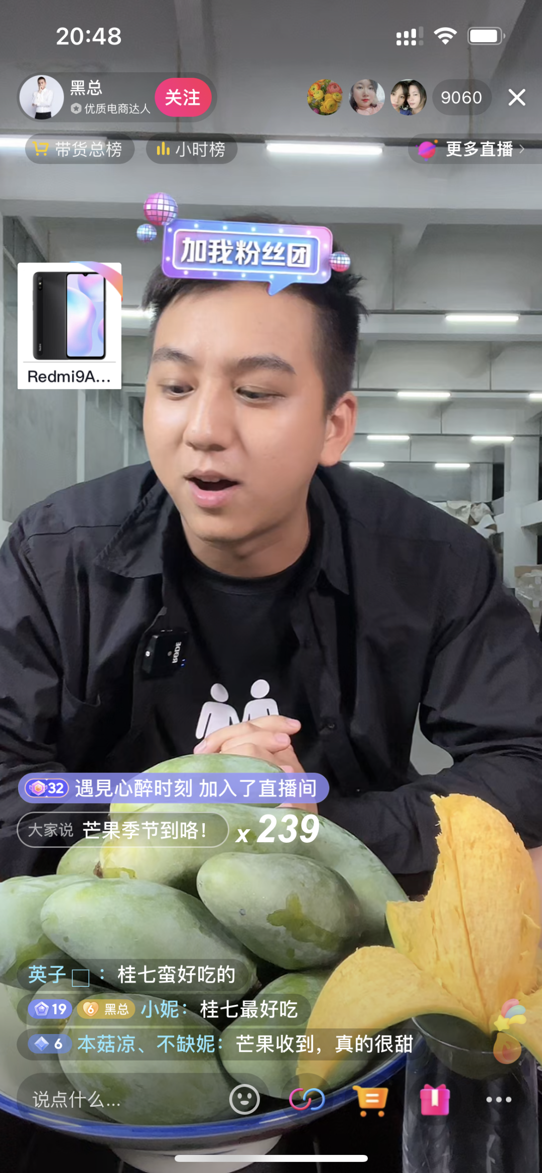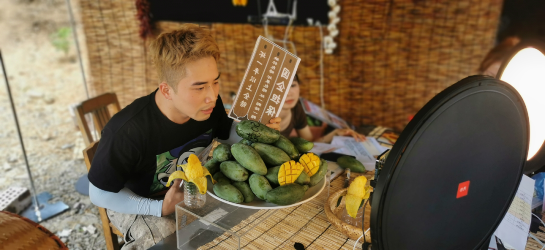 网红达人正在农产品种植基地、生产基地、分拣仓等地直播。
