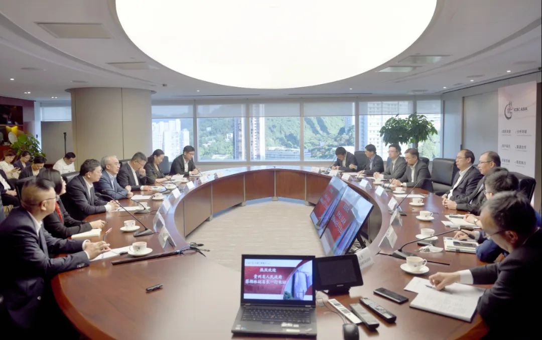 8月9日下午,贵州省政府代表团在香港与中国工商银行(亚洲)有限公司主席兼执行董事刘亚干等座谈。在港期间,贵州省政府代表团先后走访香港中联办、香港贸易发展局、冯氏集团、南丰集团、中华出入口商会、香港特区政府文化体育及旅游局、香港中国旅游协会、香港广播电视有限公司(香港新界将军澳电视城)、港股100强研究中心、工银亚洲、香港科技园(智能多维数据分析研究中心)、新意网集团Mega Plus数据中心、香港中华厂商联合会等,并分别与各部门、企业、协会负责人座谈,围绕扩大外贸进出口、文化旅游产业等重点领域合作交谈探讨,共享新经验、携手新合作、共谋新发展。