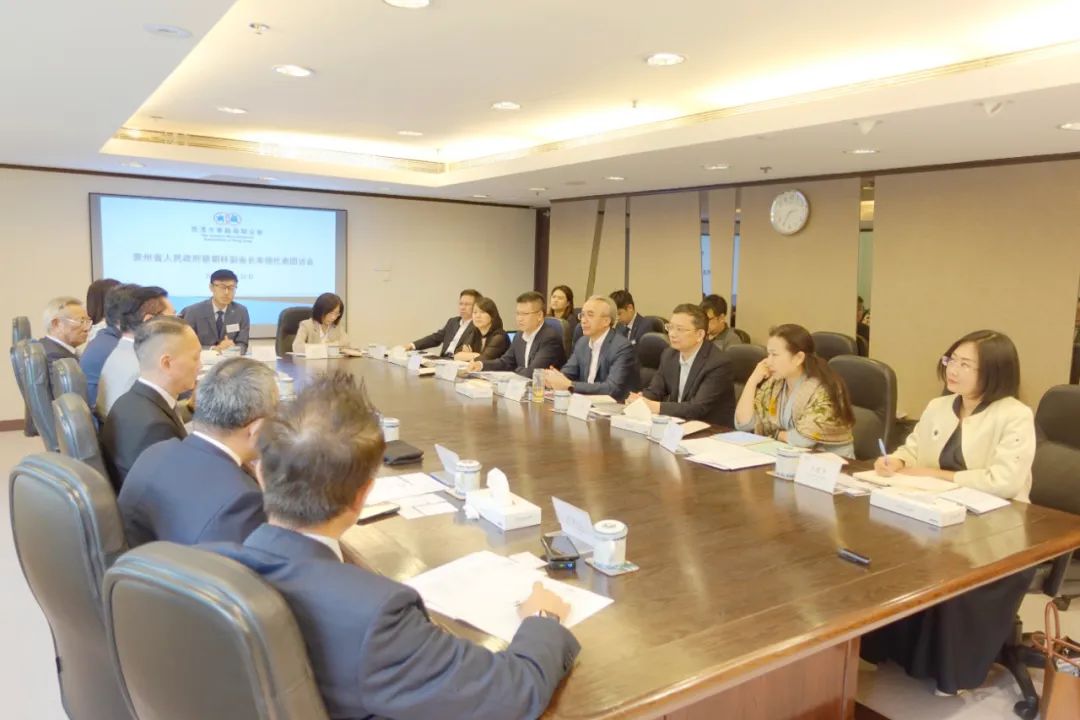 8月10日下午,贵州省政府代表团在香港与香港中华厂商联合会主席史立德等座谈交流。双方围绕推动香港中华厂商联合会及其会员企业与贵州开展产业合作等深入交流。