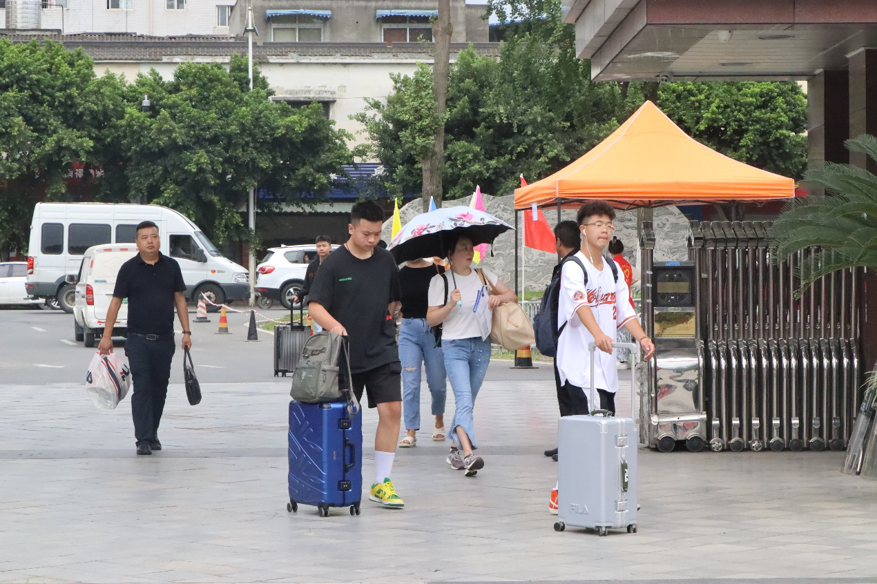 为了解决外地新生来校的问题,学校开启“一站式”服务,在石羊场汽车站设立迎新接待站,同时,学校在校门口、校园主干道、学生宿舍区等设立防暑降温、咨询服务等点位,并为新生及家长免费发放报到日餐券,现场体验学校食堂就餐环境。学生、团委、招办、教务、后勤、财务及各系部等工作人员坚守岗位,为新生提供全面、优质、便捷的服务,确保新生安全、有序报到,并提供舒适、温馨的环境。