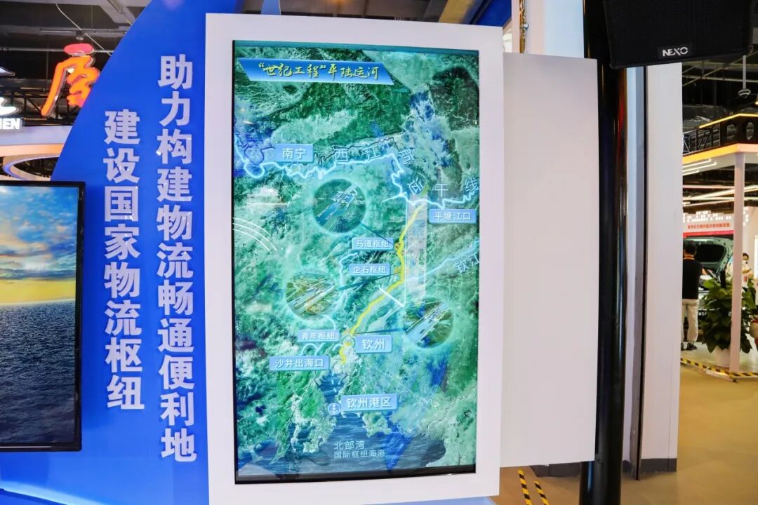 “建设国家物流枢纽助力构建物流畅通便利地”展区内,聚焦广西在服务和融入新发展格局上的新作为,重点展示了平陆运河、边境智慧口岸、北部湾国际门户港建设成效,吸引了众多观展群众驻足参观,彰显壮乡高质量发展活力。