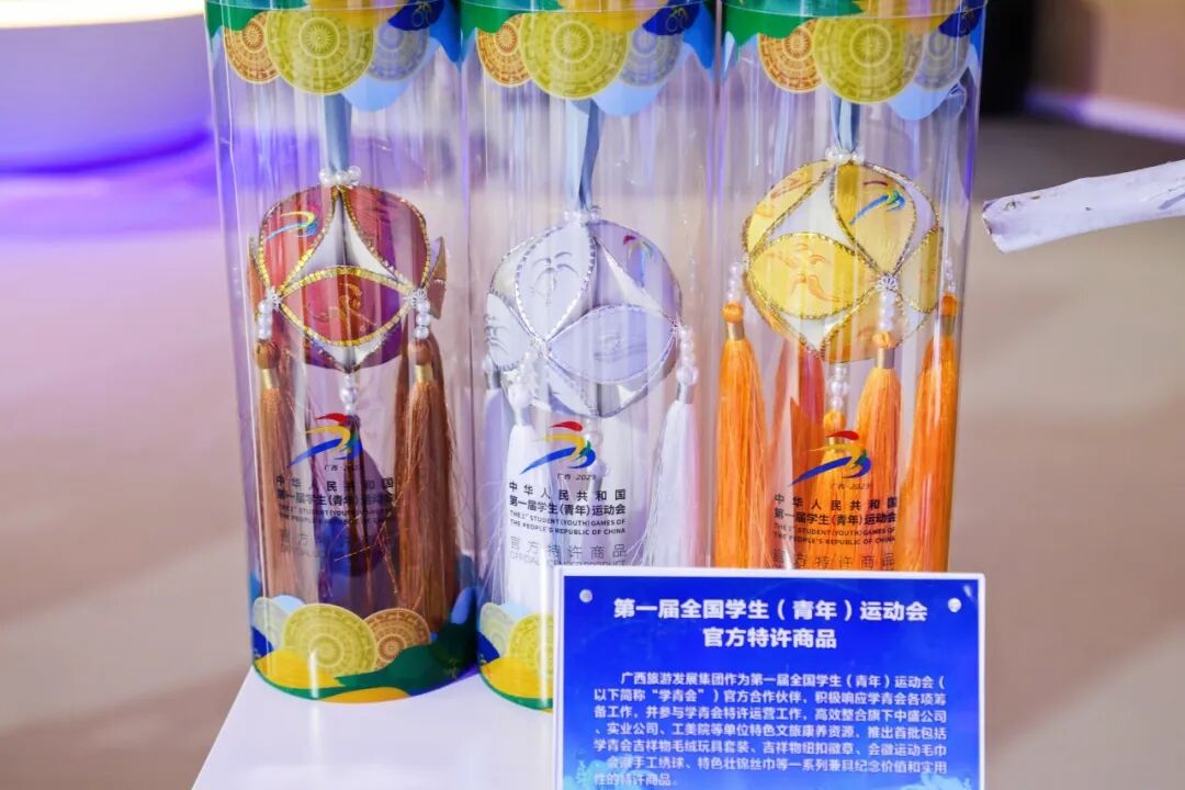 本产品以广西绣球为载体,兼具广西传统文化元素与学青会时尚运动元素,代表着广西团结、友谊、圆满的象征,以及对学青会在广西成功举办的美好祝愿。