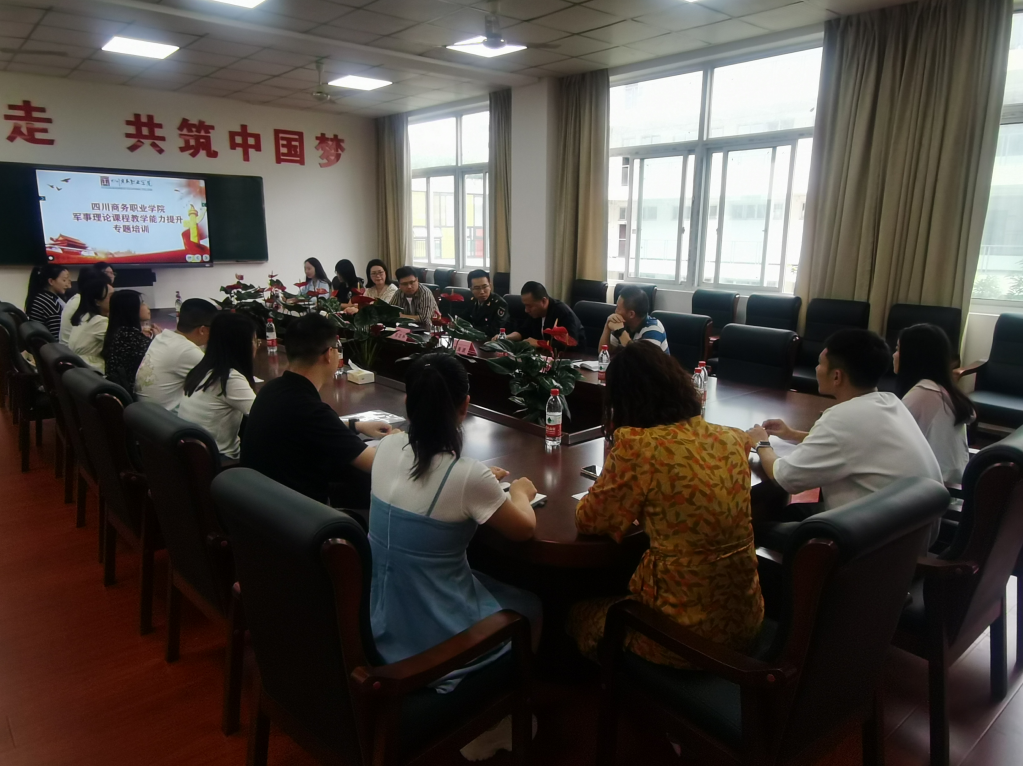 为进一步推进四川商务职业学院军事理论课程建设,提升该课程教学水平,9月12日,学院党委学生工作部举办军事理论课程教学能力提升专题培训,学院党委委员、副院长官培生,党委学生工作部部长郑海波,学院20余名军事理论课授课教师及有意愿参与军事理论课教学的学工人员参加了培训。