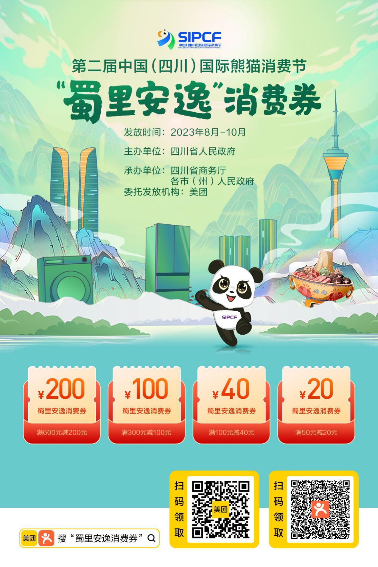 为喜迎中秋、国庆“双节”到来,进一步释放消费潜力,营造消费氛围,四川将在中秋、国庆前夕继续发放第二轮第二届中国(四川)国际熊猫消费节“蜀里安逸”消费券。