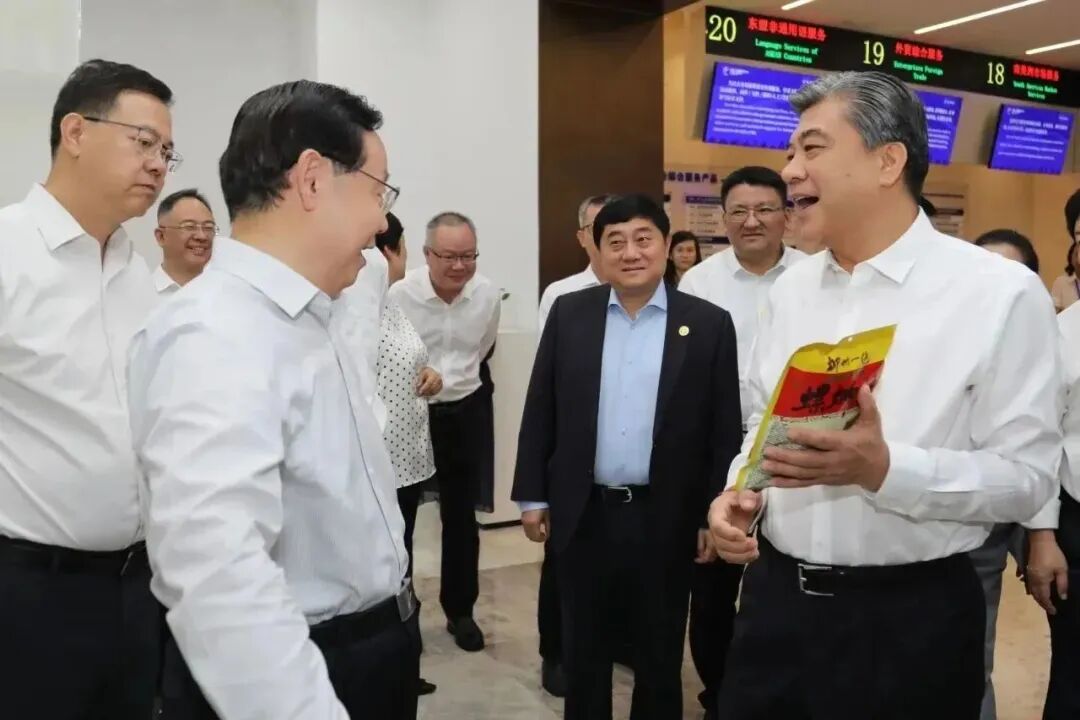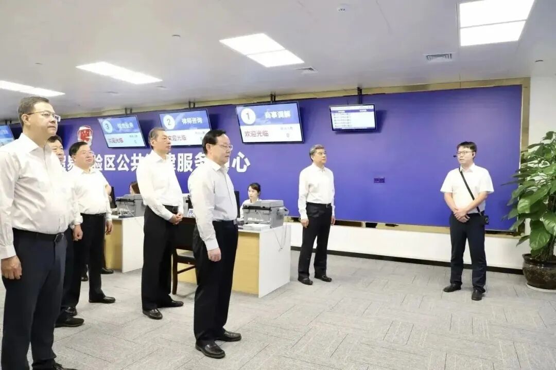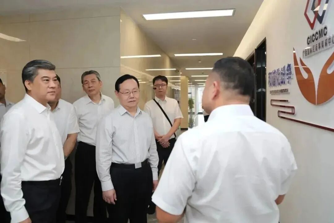 蒋作君一行在中国—东盟经贸中心调研广西自贸试验区公共法律服务中心。