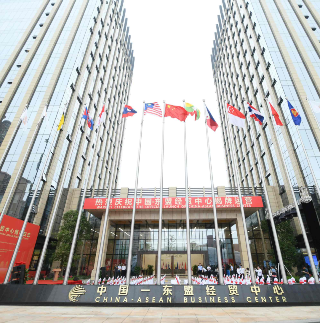 中国—东盟经贸中心是服务企业“走出去”、“引进来”的“一站式”综合服务平台,自2021年4月挂牌成立以来,先后引进文莱、柬埔寨、印尼、马来西亚、缅甸等11个国家共54家商贸组织、商协会、跨国机构及知名企业。