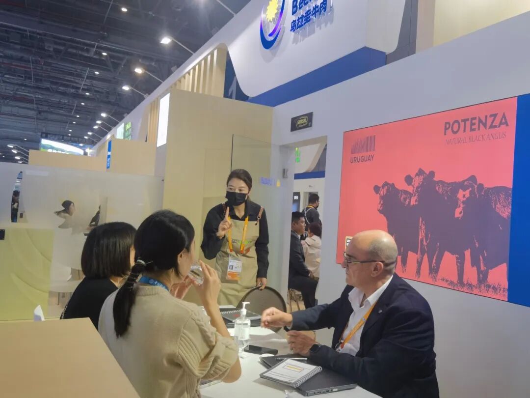 乌拉圭的牛肉展台人气还不错,他们的展位规模可不小,让记者足足绕了一个圈!