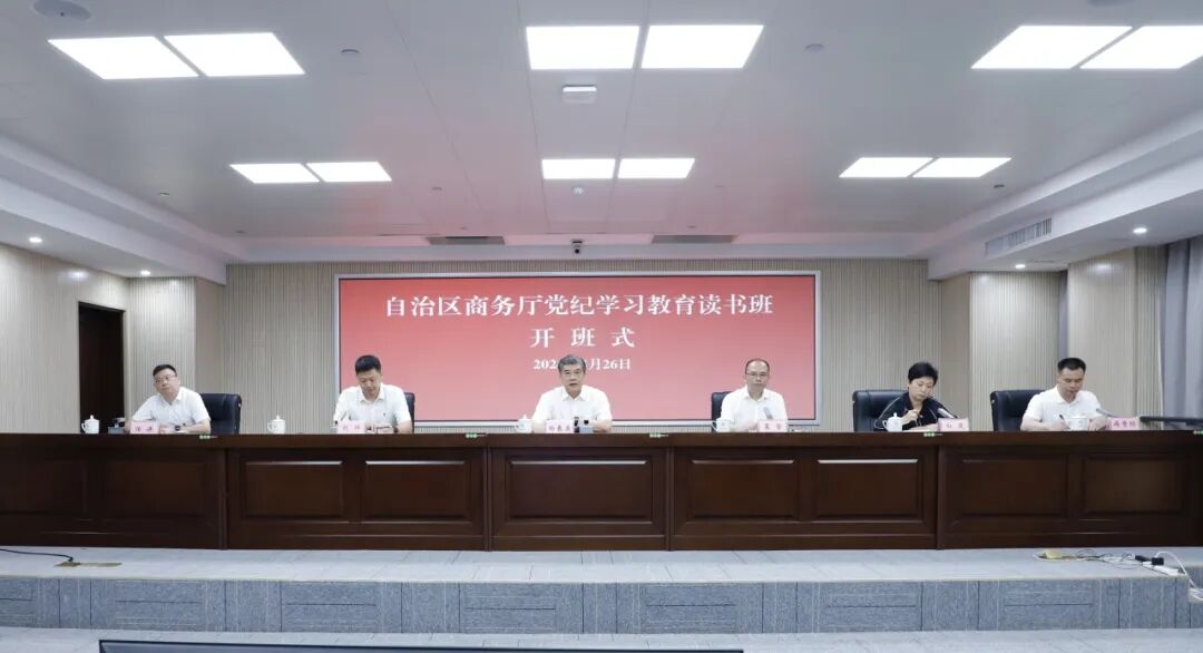 根据党中央、自治区党委关于党纪学习教育的部署安排,4月26日,自治区商务厅党纪学习教育读书班和集中学习开班动员会成功举行。自治区商务厅党组书记、厅长杨春庭作开班动员讲话。开班式由自治区商务厅党组成员、副厅长粟坚主持,全体党员干部集中学习修订后的《中国共产党纪律处分条例》。