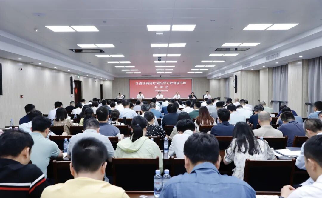 △自治区商务厅党组党纪学习教育读书班第一次集中学习现场。