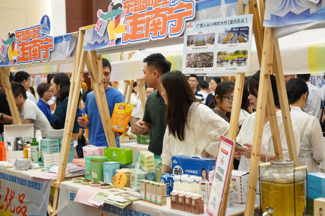 活动现场设立“邕优品”(“邕有好物”)展品区,摆满了老友粉、水牛奶、茉莉花茶、老友饼、泡椒鸭掌等南宁特色食品,还有美妆、日用、3C等多种南宁优质工业消费品,为南宁好物搭建面向东盟的展示平台。