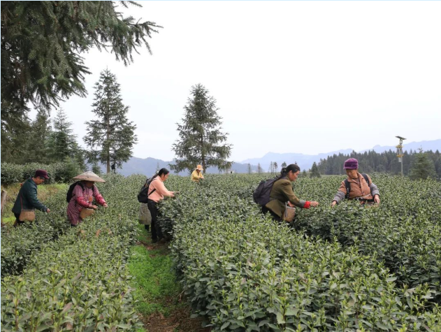 江口县怒溪镇骆象村村民在采茶。黎福慧杨康摄