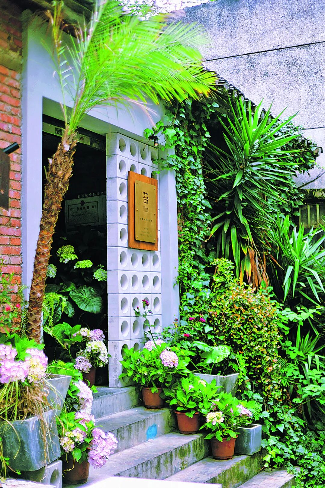 “苔”西餐厅门口被装饰得格外优雅静谧。