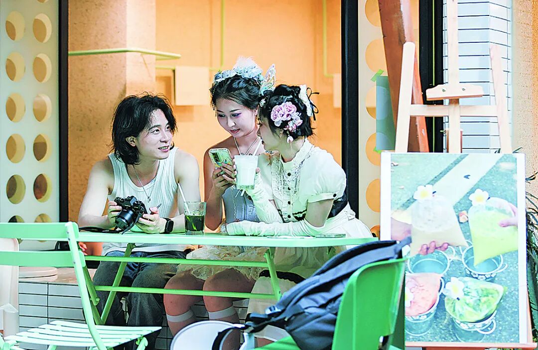 5月20日,夜幕降临,家住三桥的朱燕约上好友,轻松地围坐在省府北街巷子一家装修文艺、名叫“鹿车”的甜品店,边吃边聊,说到开心处不禁畅怀大笑,笑声回荡在巷子里。