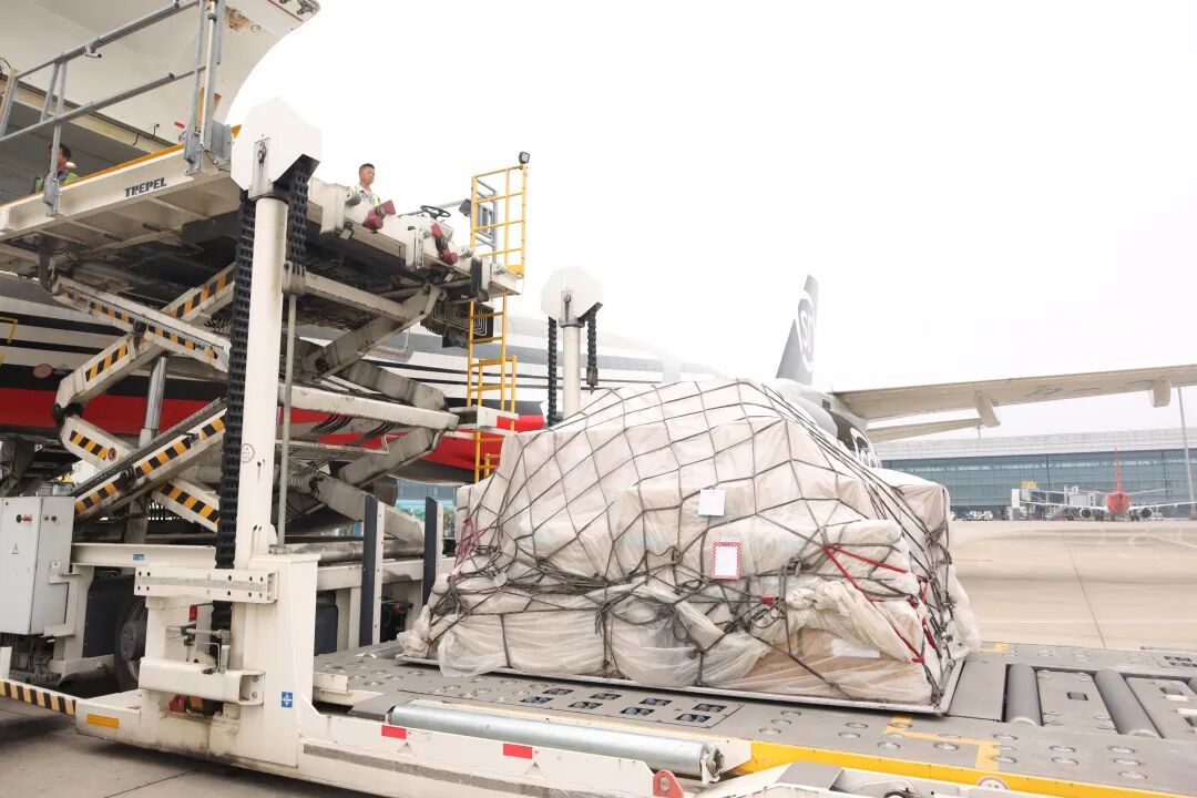 载有6吨服装、电子产品等商品的全货机。彭怡 摄