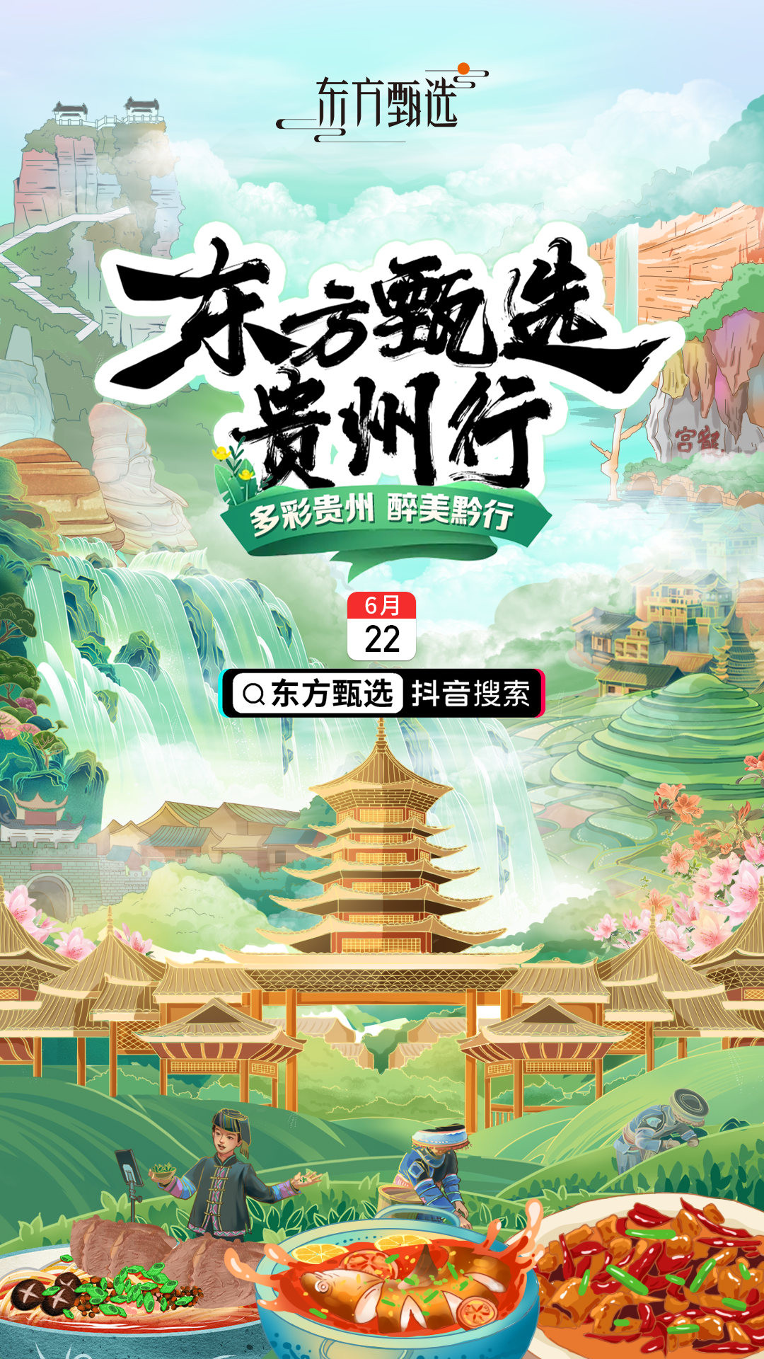 东方甄选将于6月22日至23日走进贵州,通过“文旅+带货”直播形式,向全国网友推荐贵州好景好物。