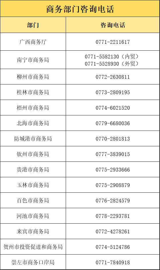小贴士:商务部门咨询电话